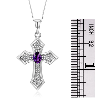 RYLOS 14K White Gold Cross Necklace: Gemstone & Diamond Pendant - 7X5MM Birthstone - 18 Chain - Elegant Jewelry