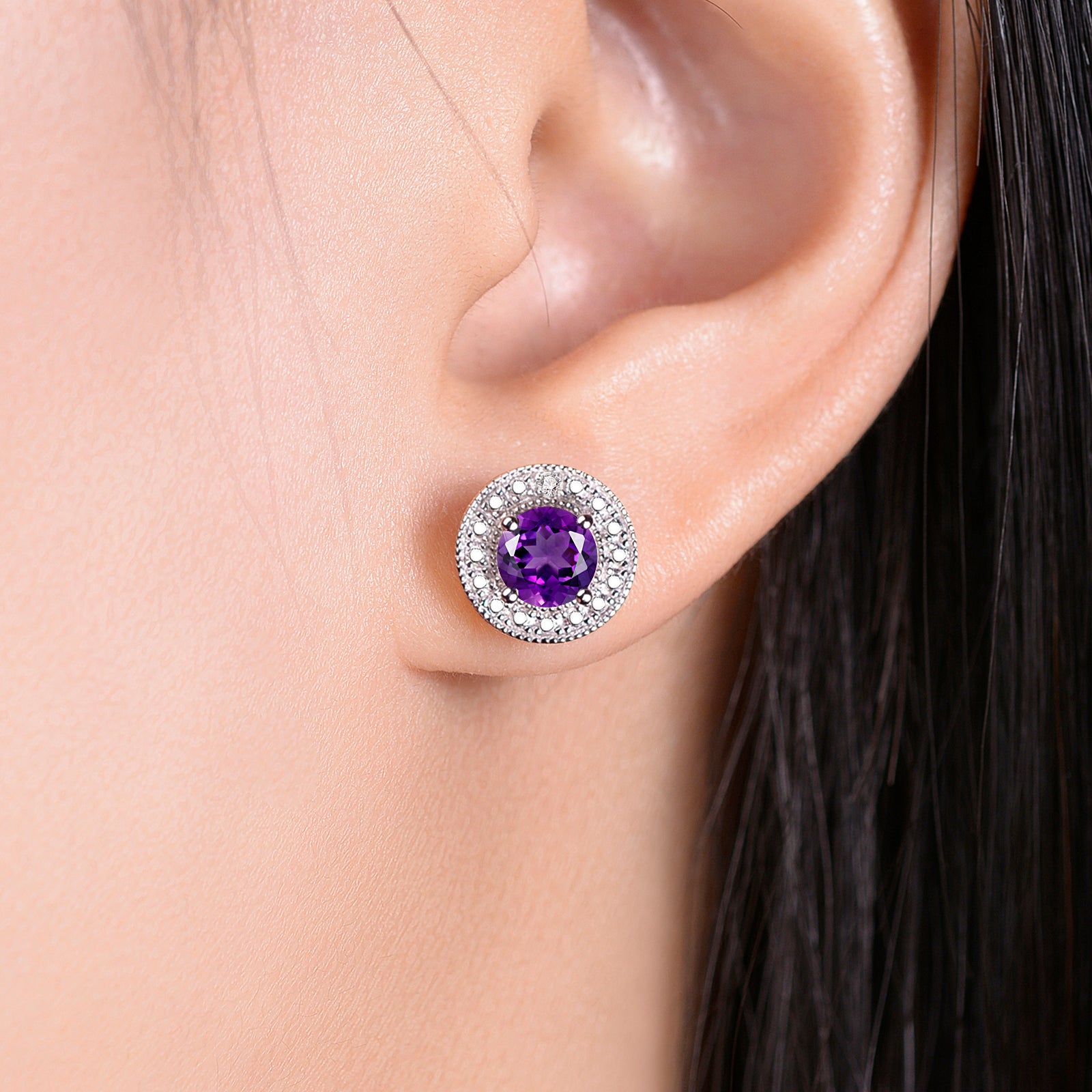 Rylos 14K White Gold Halo Stud Earrings - 4MM Round Gemstone & Diamonds - Exquisite Birthstone Jewelry