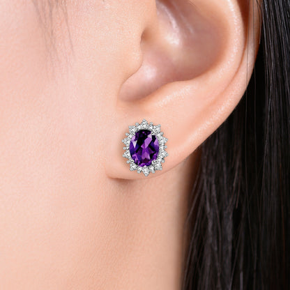 RYLOS 14K White Gold Princess Diana Inspired Earrings - 8X6MM Oval Shape Gemstone & Diamonds - Birthstone Earrings - Timeless Color Stone Jewelry
