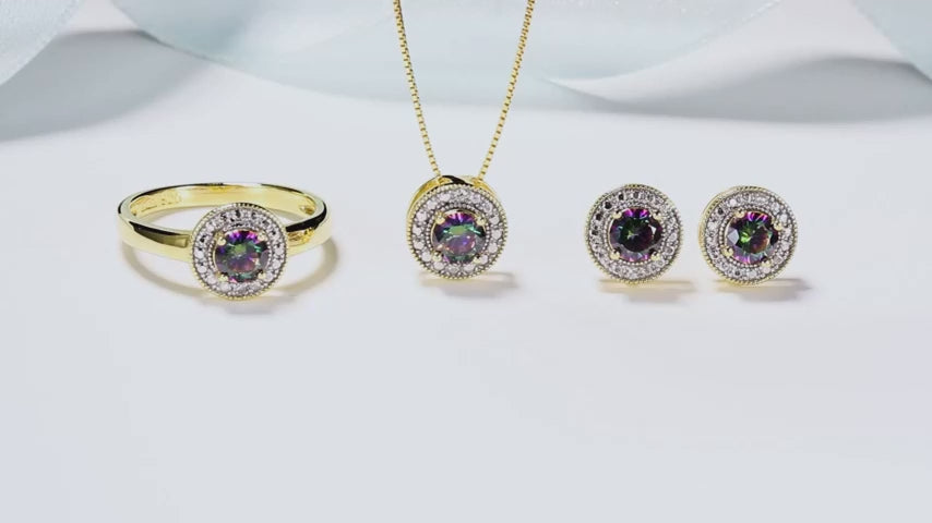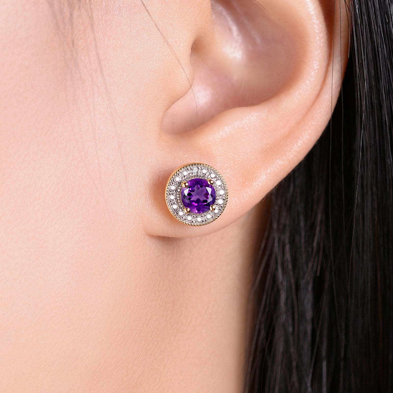 RYLOS 14K Yellow Gold Halo Stud Earrings - 4MM Round Gemstone & Diamonds - Exquisite Birthstone Jewelry