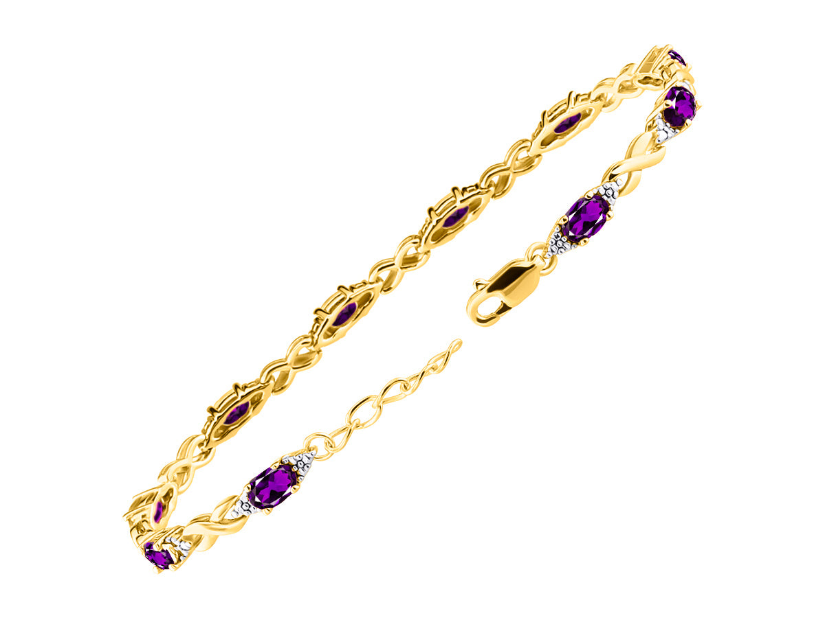 RYLOS Bracelets for Women Yellow Gold Plated Silver XO Hugs & Kisses Tennis Bracelet Gemstone & Diamonds Adjustable to Fit 7"-8" Wrist, 10 Gorgeous 6X4MM Jewelry for Women Friendship Bracelets