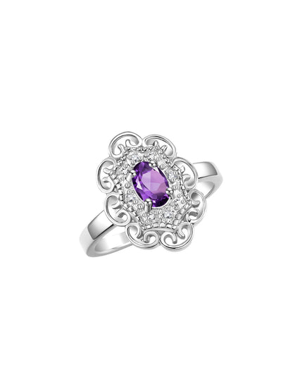Rylos Floral Designer Ring with 6X4MM Oval Gemstone & Sparkling Diamonds in Sterling Silver- Birthstone Jewelry for Women - Available in Sizes 5 to 10 Embrace Elegance!