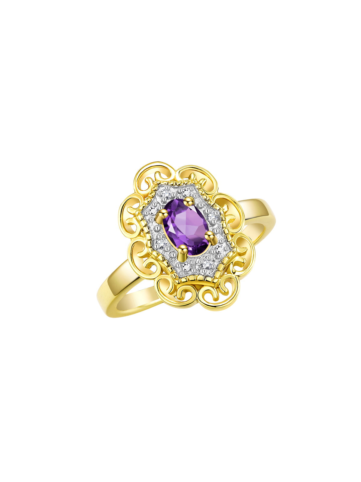 Rylos Floral Designer Ring with 6X4MM Oval Gemstone & Sparkling Diamonds in Yellow Gold Plated Silver- Birthstone Jewelry for Women - Available in Sizes 5 to 10 Embrace Elegance!