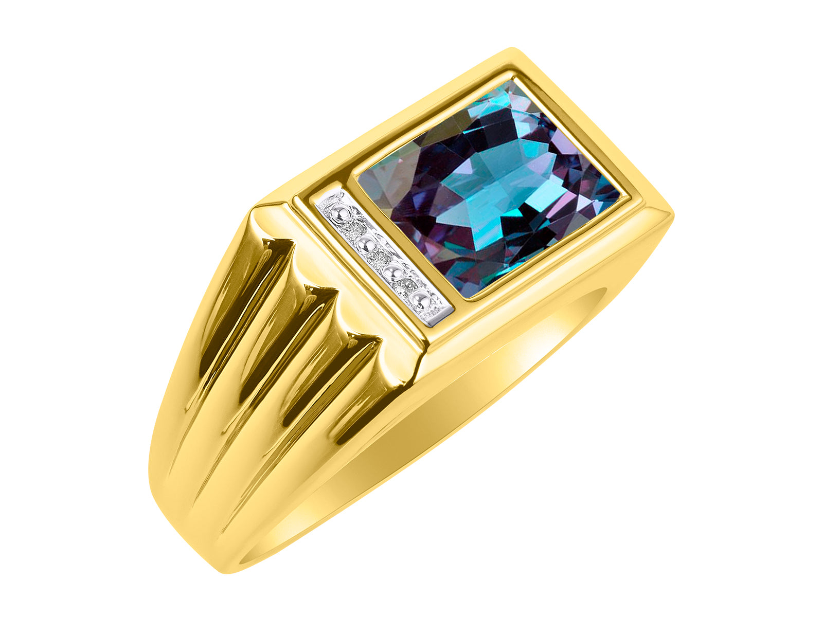 RYLOS Gorgeous Alexandrite, Aquamarine or Onyx in Yellow Gold Plated Silver Sizes 8-13
