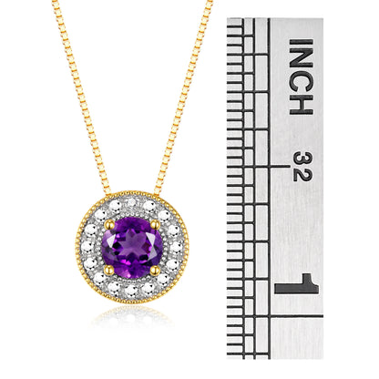 RYLOS Halo Designer Necklace: Gemstone & Diamond, 18" Chain, 4MM Birthstone, Yellow Gold Plated Silver Women's Elegant Jewelry