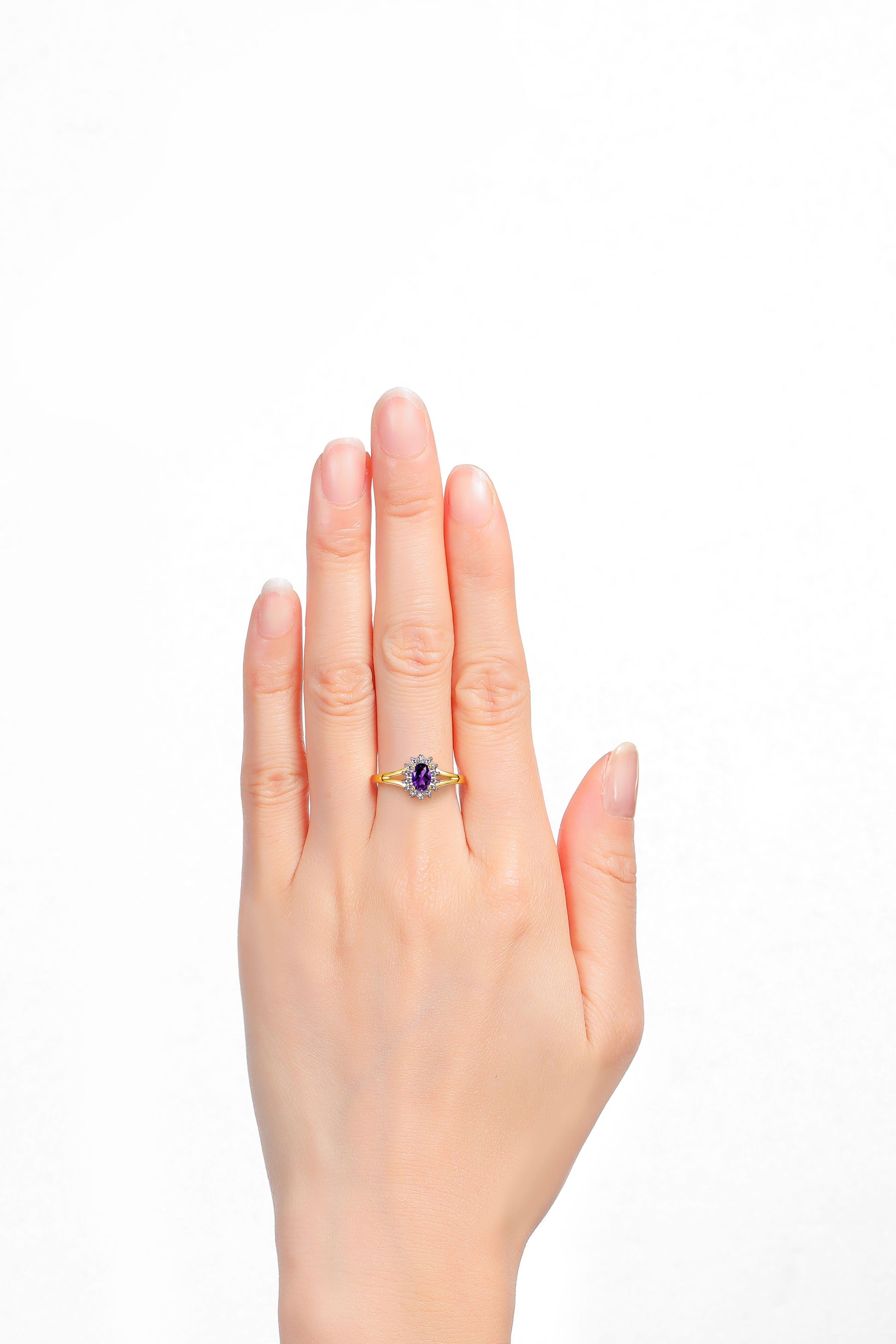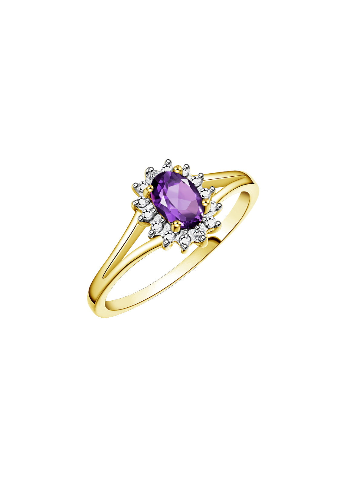 RYLOS Halo Ring: Diamond Birthstone with 6X4MM Oval Gemstone - Women's Jewelry in Yellow Gold Plated Silver - Stunning Diamond Ring Sizes 5-10