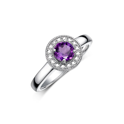 RYLOS Halo Ring with Round 4MM Gemstone & Diamonds Elegant Birthstone Jewelry for Women in Sterling Silver Available in Sizes 5-8