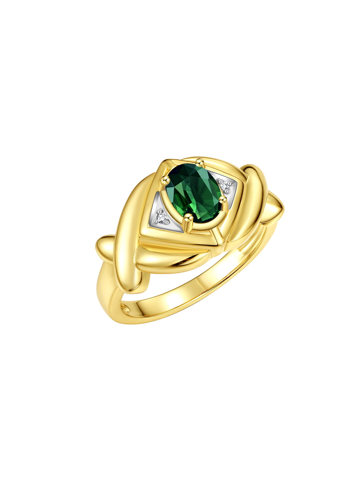 RYLOS 14K Yellow Gold XOXO Hugs & Kisses Ring with 7X5MM Gemstone & Diamonds - Birthstone Jewelry for Women in Gold, Sizes 5-10