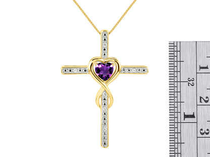 RYLOS Matching Jewelry 14K Yellow Gold Claddagh Friendship Ring & Cross Necklace with 18" Chain. Heart 6X4MM Gemstone & Diamonds; Sizes 5-10