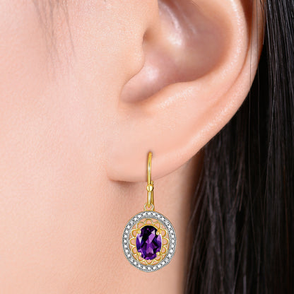 RYLOS Matching Jewelry Set Yellow Gold Plated Silver Princess Diana Inspired: Earrings & Pendant Necklace with 18" Chain. Gemstone & Diamonds, 8X6MM Birthstone