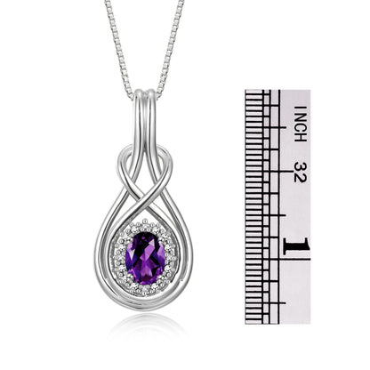RYLOS Matching Love Knot Jewelry Set 14K White Gold Ring & Pendant Necklace. Gemstone & Diamonds, 8X6MM & 7X5MM Birthstone; Sizes 5-10