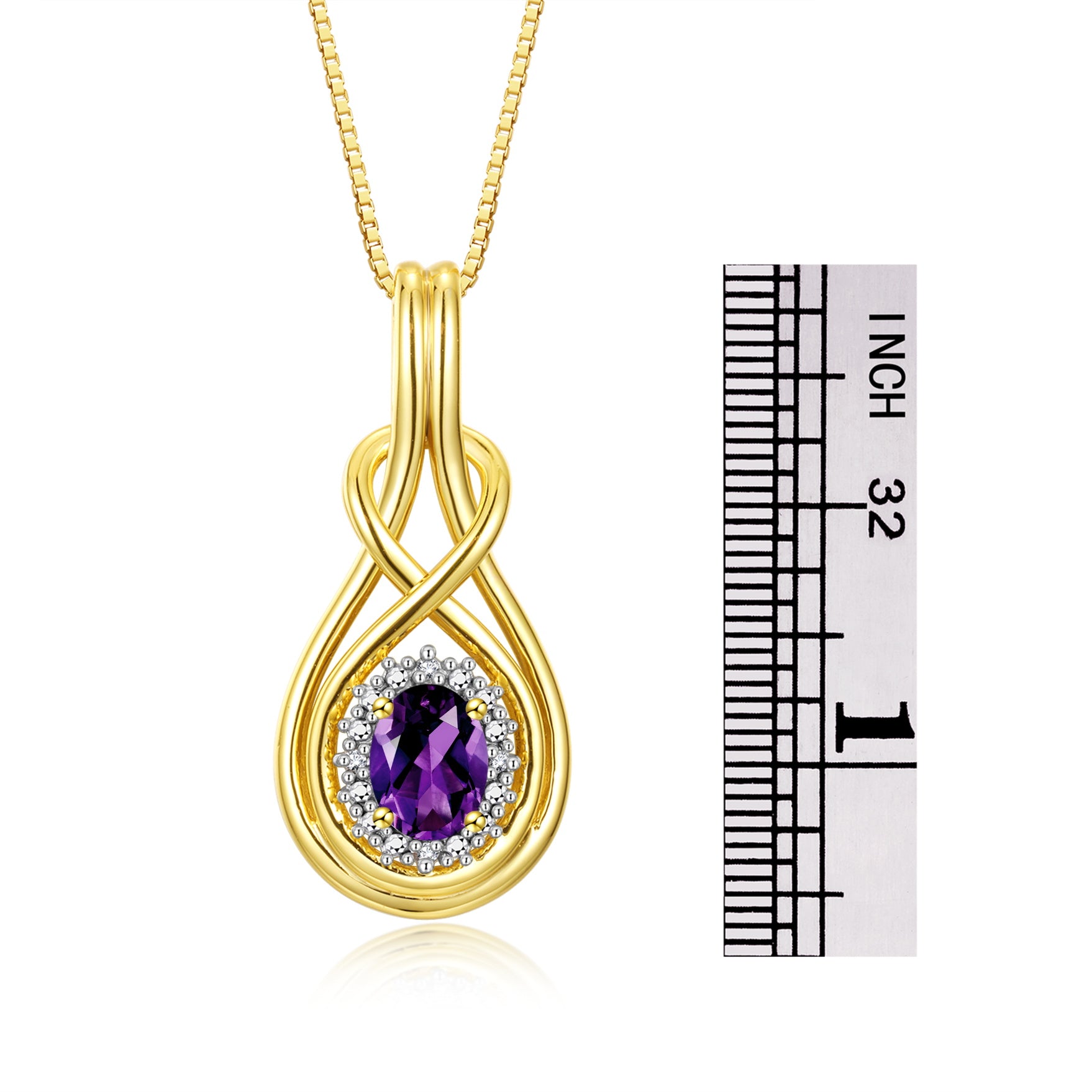 RYLOS Matching Love Knot Jewelry Set 14K Yellow Gold Ring & Pendant Necklace. Gemstone & Diamonds, 8X6MM & 7X5MM Birthstone; Sizes 5-10