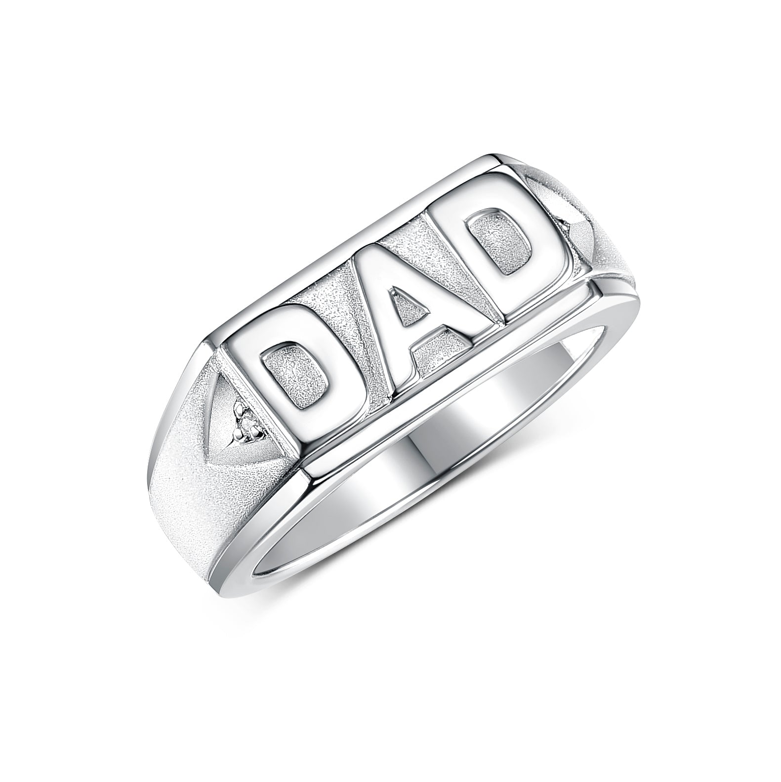 Rylos Men's Classic DAD Ring, Sterling Silver or Gold Plated with Diamond Accents, Elegant Father’s Jewelry, Timeless Gift Ring for Dad, Stylish Men’s Silver Ring, Available in Sizes 6–13