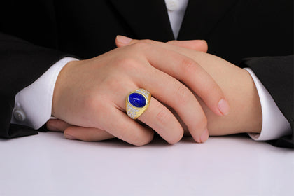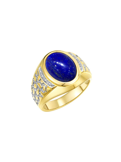 RYLOS Men's 14K Yellow Gold Nugget Ring featuring an Oval Cabochon Gemstone and Diamonds in Sizes 8-13. Exceptional Men's Jewelry.