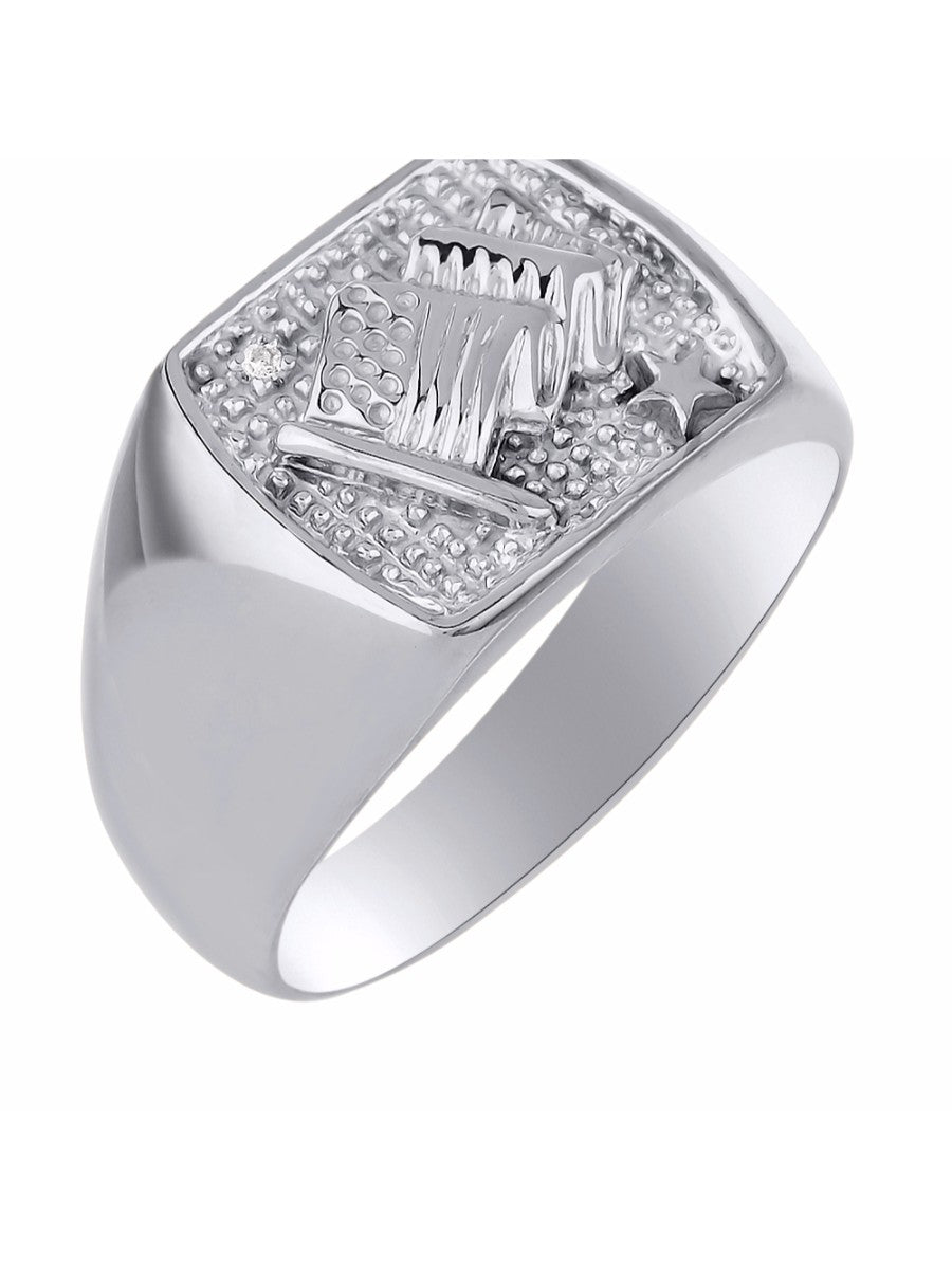 RYLOS Men's Patriotic USA Flag Ring with Diamond – Men's Jewelry in Sizes 6-13 Sterling Silver or Yellow Gold Plated Silver
