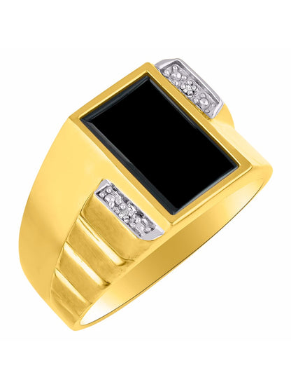 RYLOS Men's 14K Yellow Gold or 14K White Gold Ring with Black Onyx & Diamonds Designer Men's Jewelry in Sizes 8-13