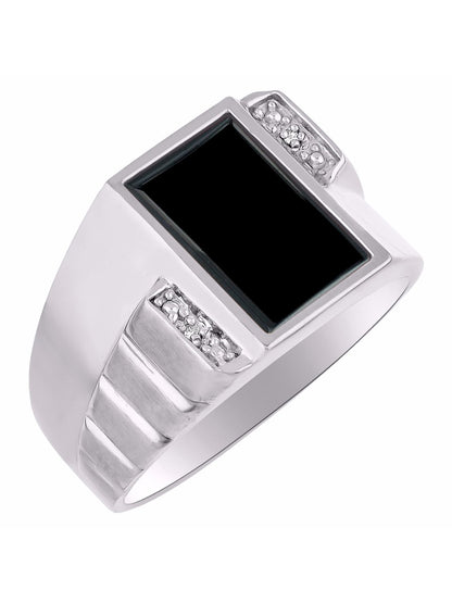RYLOS Men's Ring with Black Onyx & Diamonds Designer Men's Jewelry in Sizes 8-13 Sterling Silver or Yellow Gold Plated Silver