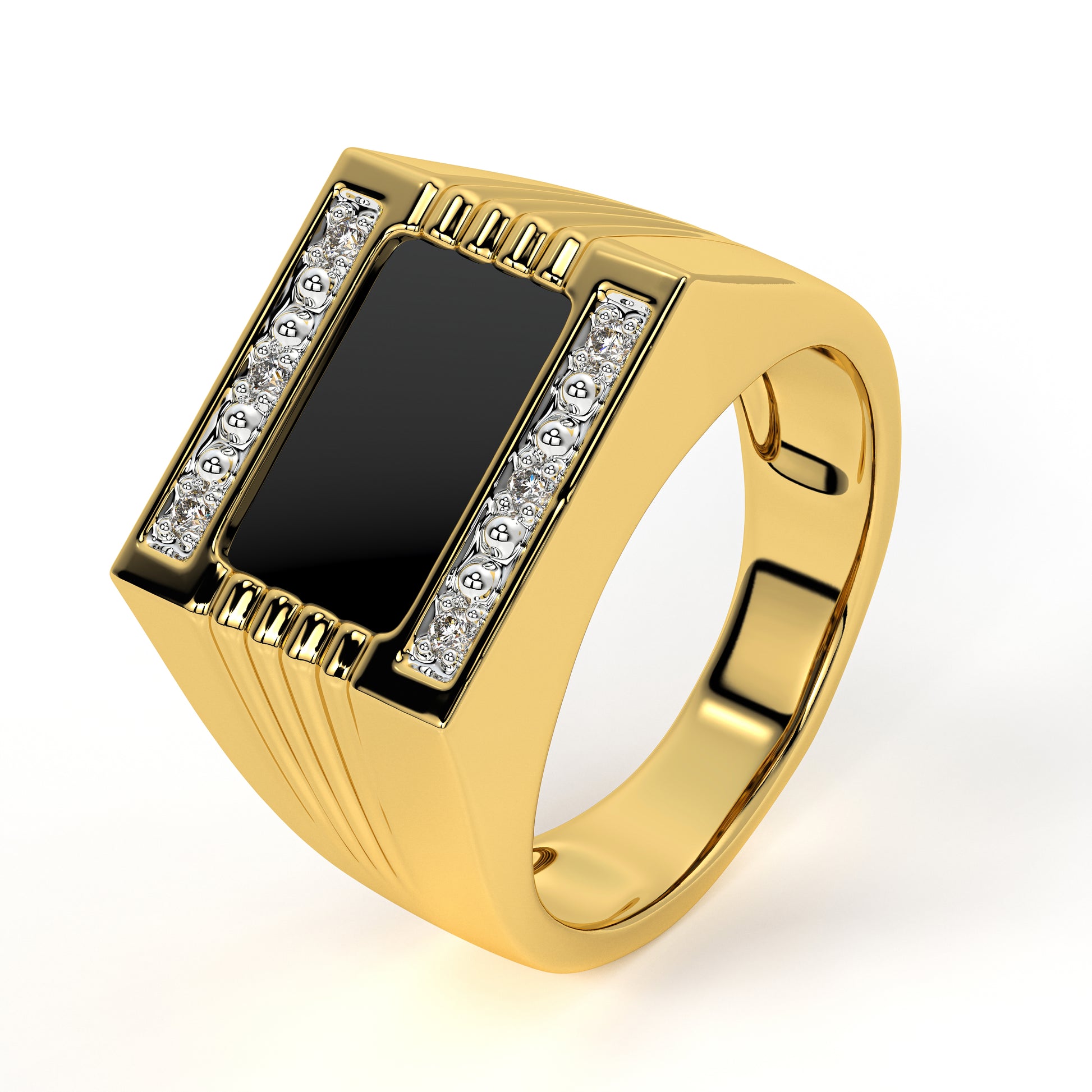 RYLOS Men's Rings 14K White Gold or 14K Yellow Gold Designer Onyx Ring With Diamonds and Black Onyx Rings For Men Sizes 8-13