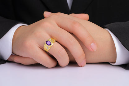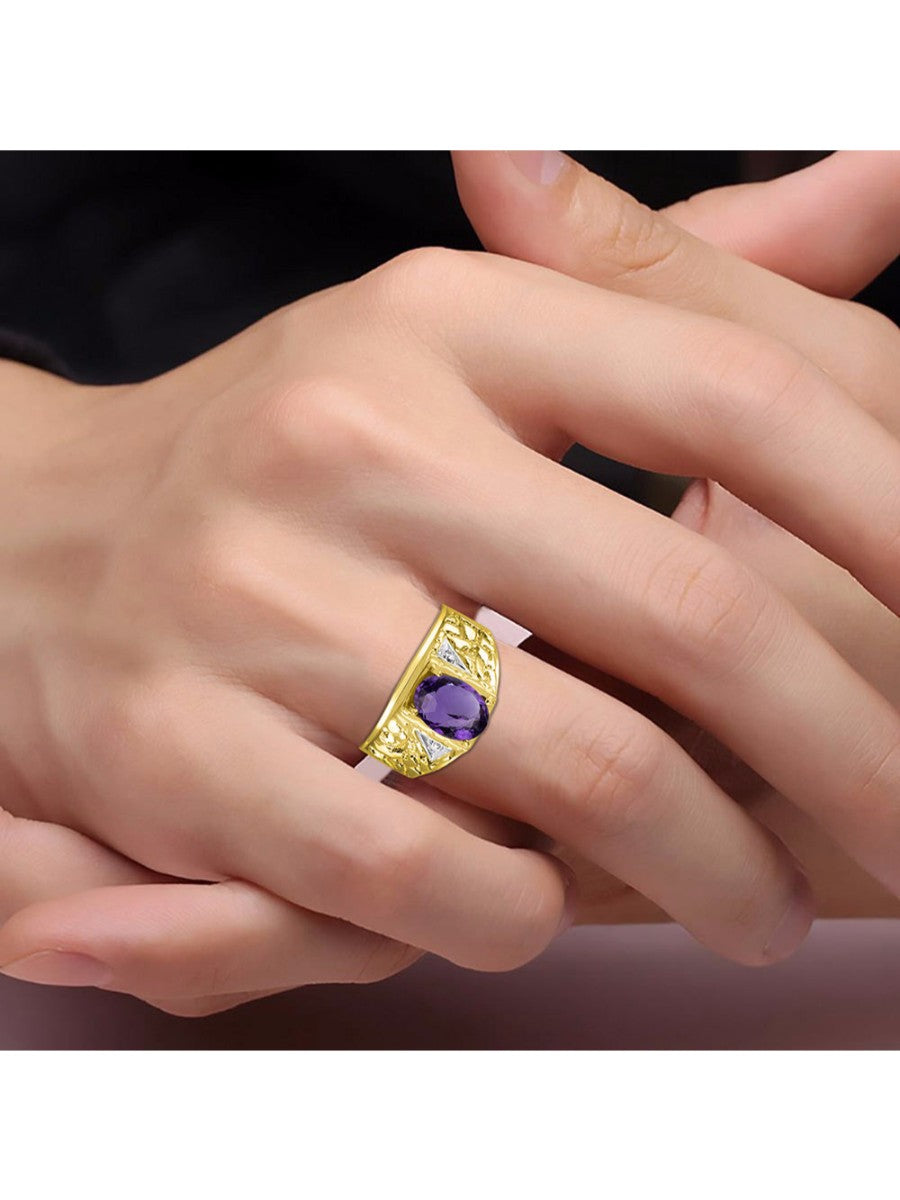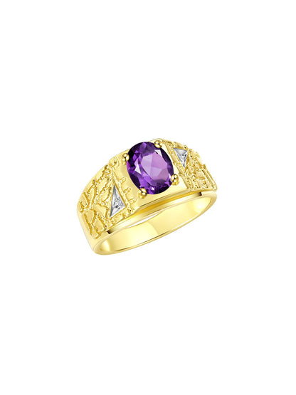 RYLOS Men's Rings Designer Nugget Ring: Oval 9X7MM Gemstone & Sparkling Diamonds - Color Stone Birthstone Rings for Men, Yellow Gold Plated Silver Rings in Sizes 8-13. Mens Jewelry