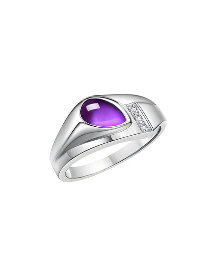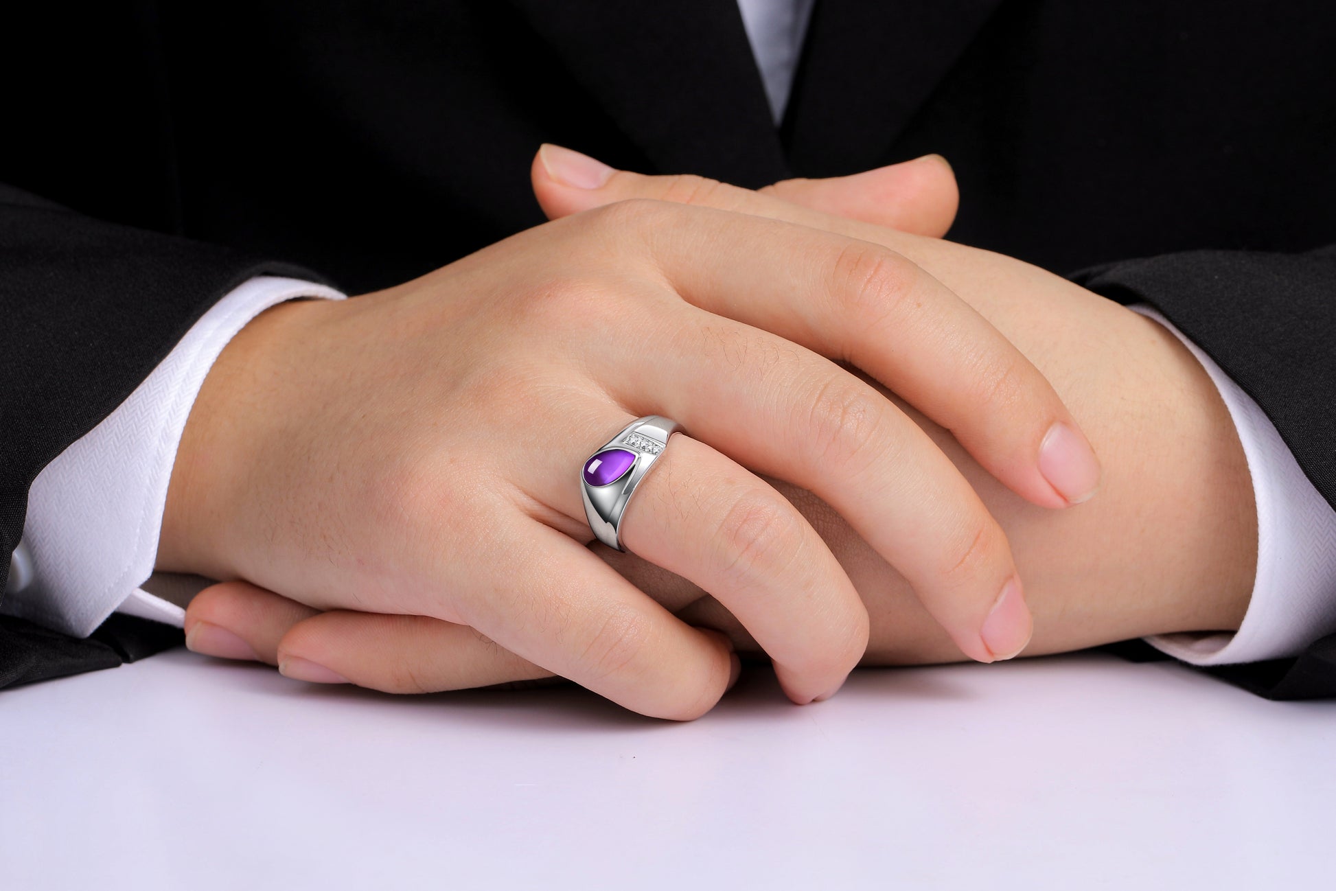 RYLOS Men's Rings - Timeless Pear Shape Cabochon Gemstone & Diamonds - Elegant Tear Drop Rings for Men, Sterling Silver Rings in Sizes 8-13. Exquisite Men's Jewelry!