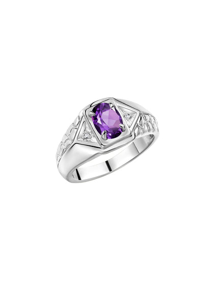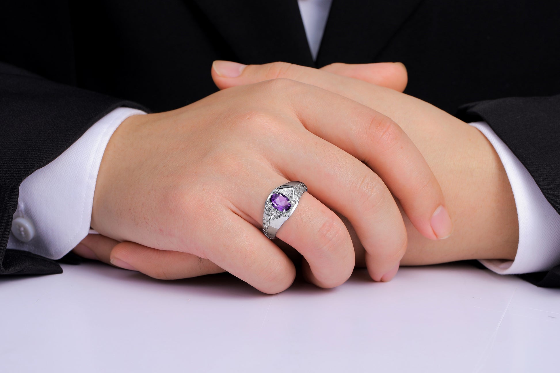RYLOS Men's Sterling Silver Classic Designer Ring - 7X5MM Oval Gemstone & Sparkling Diamond - Birthstone Rings for Men - Available in Sizes 8 to 13