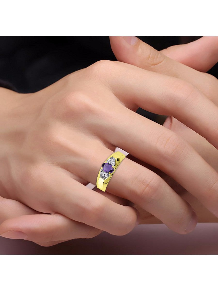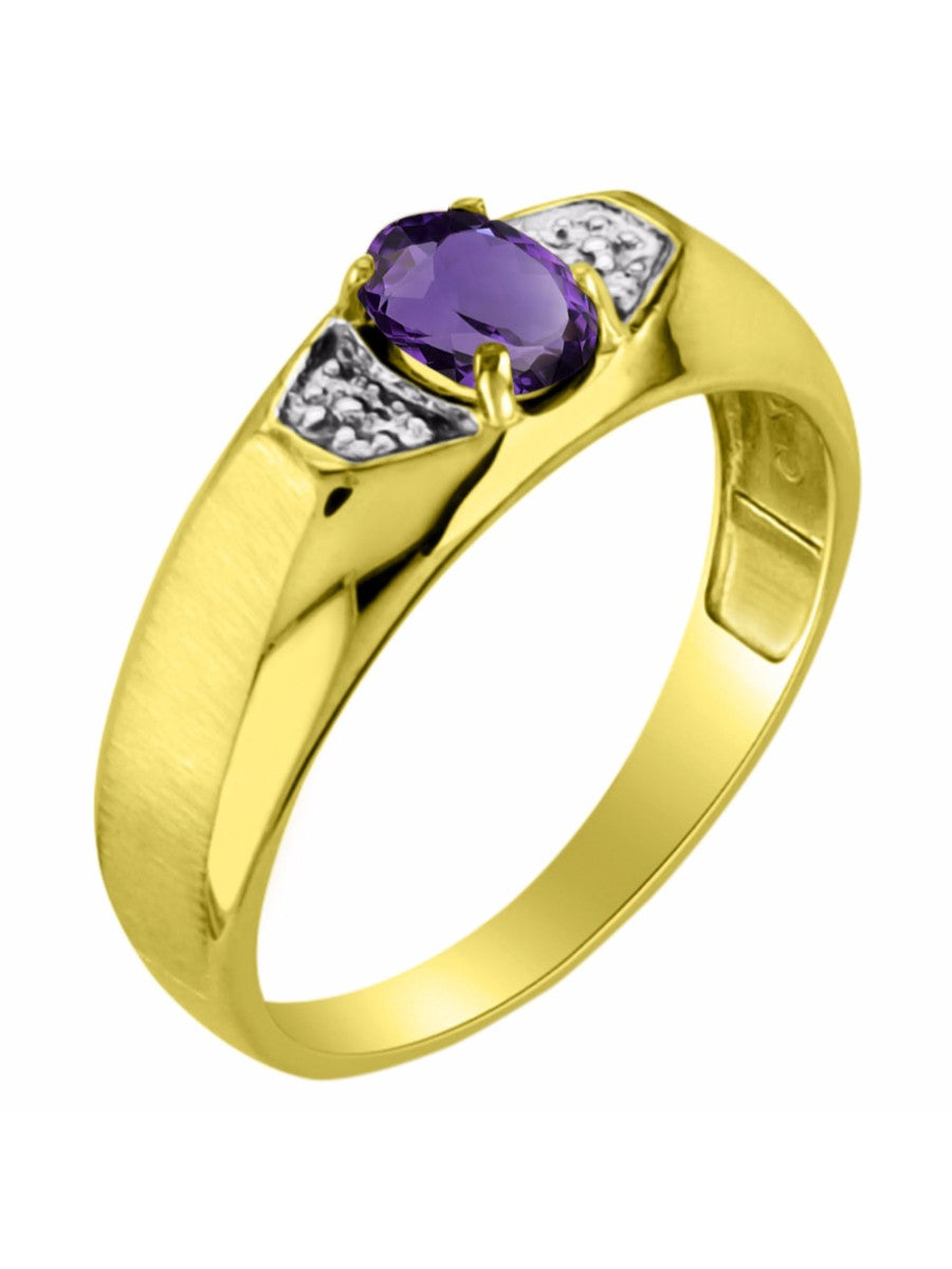 RYLOS Men's Yellow Gold-Plated Silver Classic 6X4MM Oval Gemstone & Diamond Ring - Birthstone Elegance, Sizes 8-13