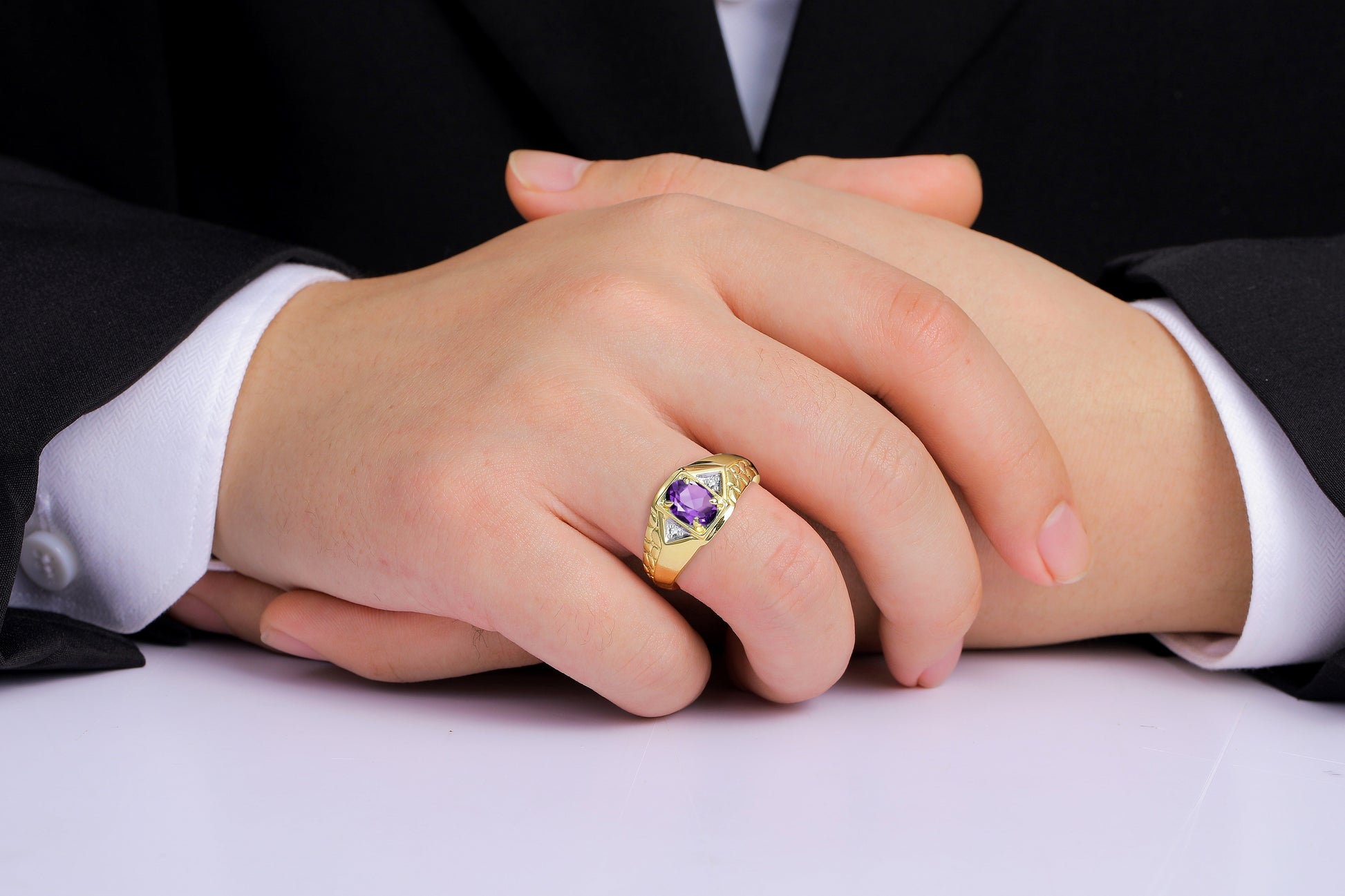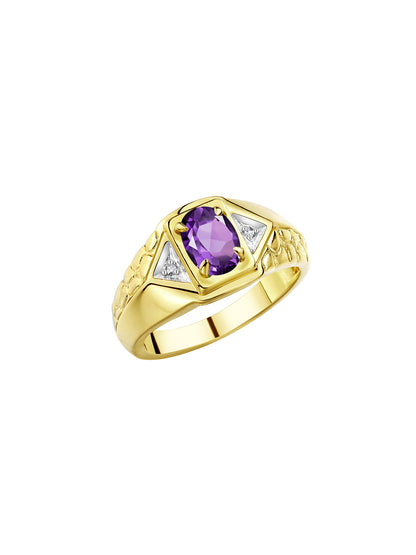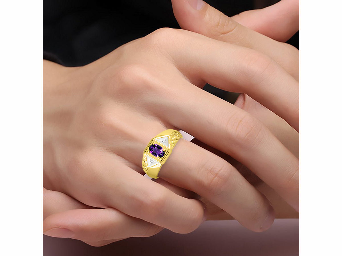 RYLOS Men's Yellow Gold Plated Silver Classic Designer Ring - 7X5MM Oval Gemstone & Sparkling Diamond - Birthstone Rings for Men - Available in Sizes 8 to 14