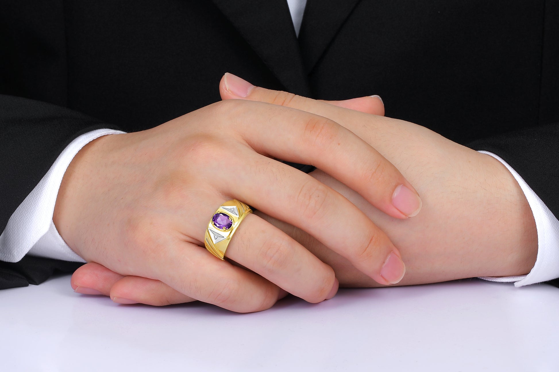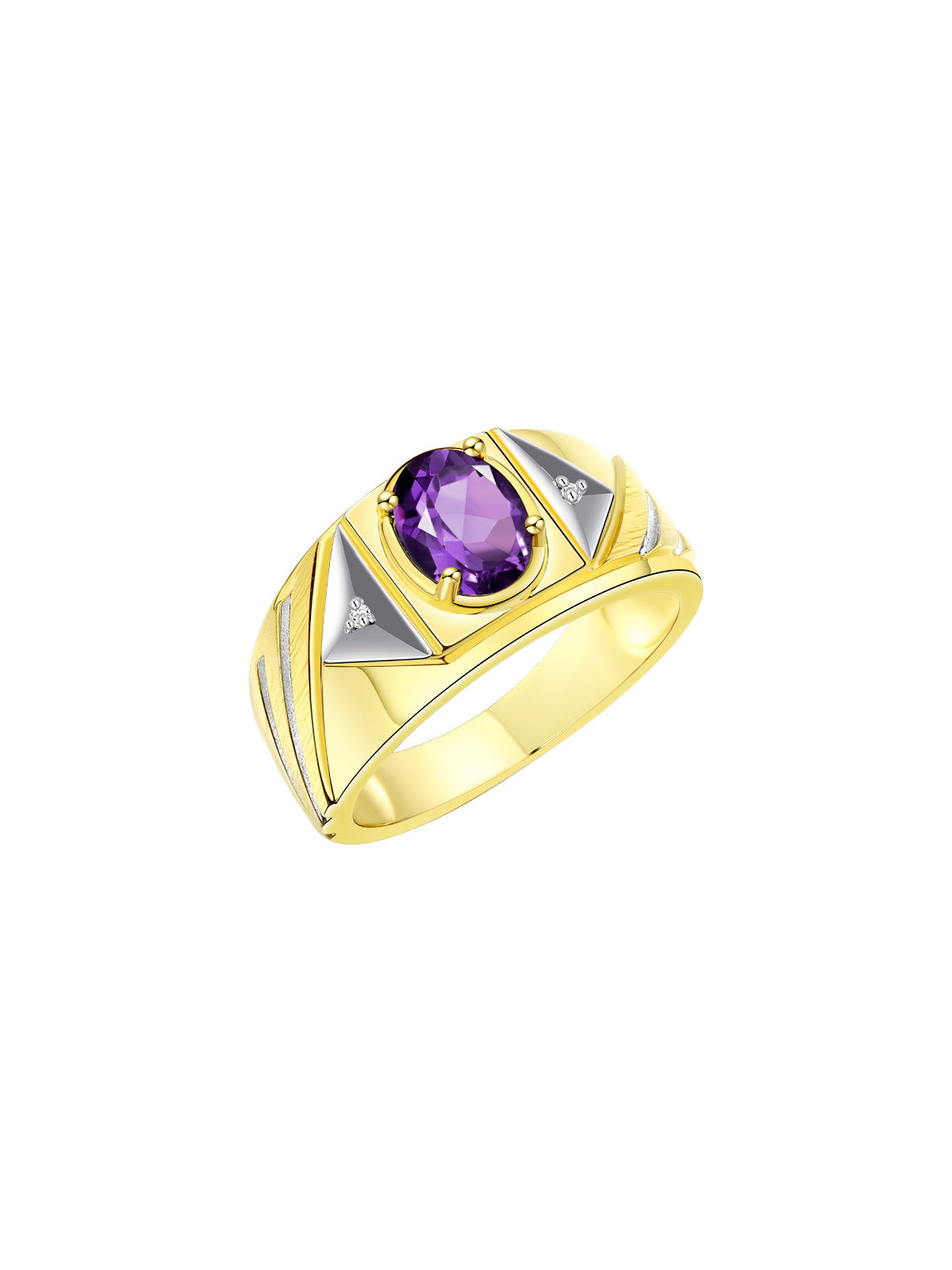 RYLOS Men's Yellow Gold Plated Silver Designer Rings - Classic Style with 8x6MM Oval Gemstone & Diamond Accents - Birthstone Rings in Sizes 8-13