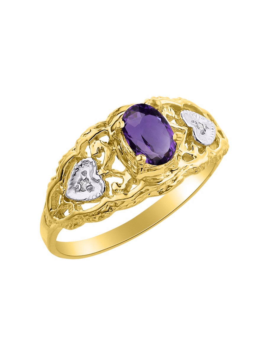 RYLOS Ring with Filigree Heart, 6X4MM Gemstone, and Diamonds - Birthstone Jewelry for Women in Yellow Gold Plated Silver, Available in Sizes 5-10