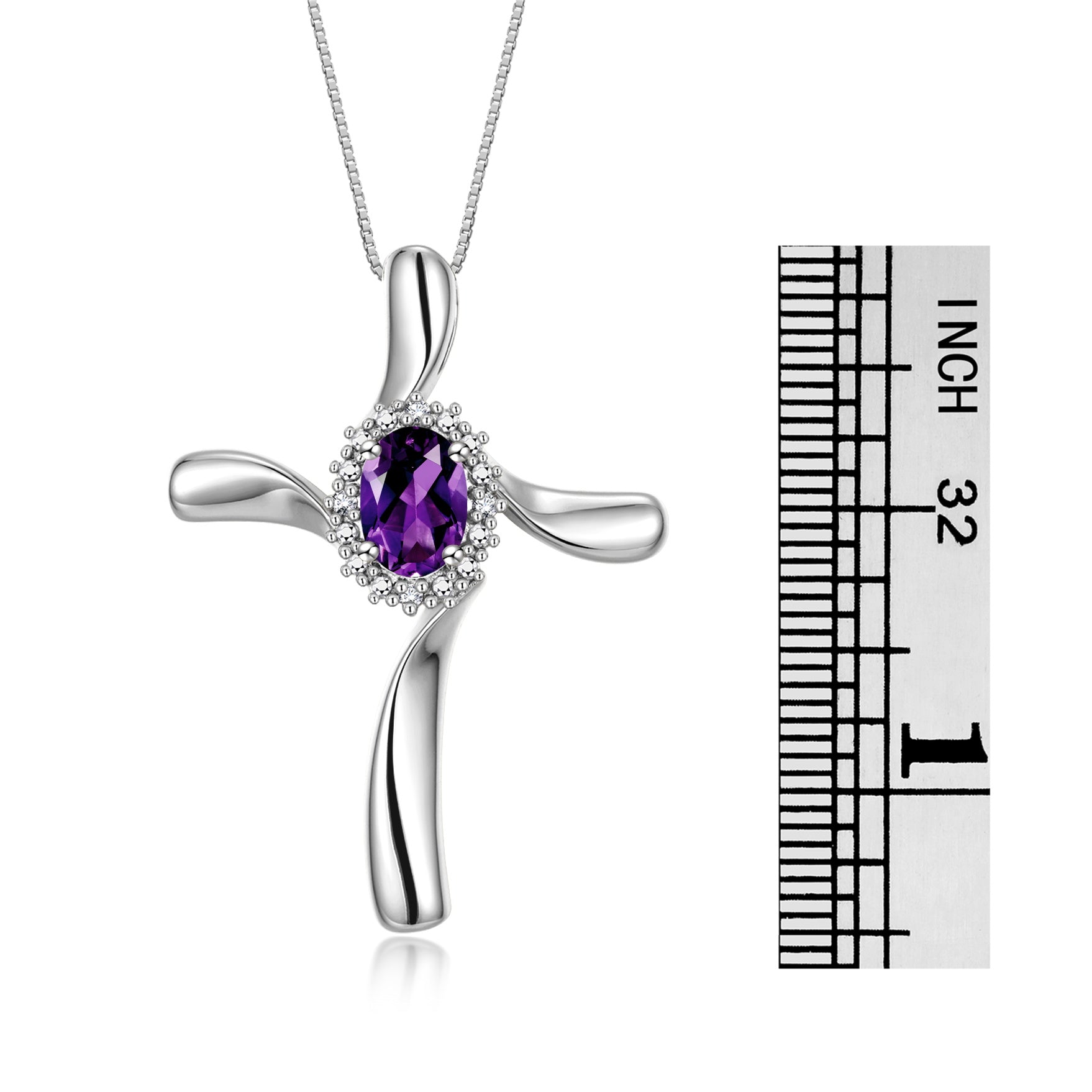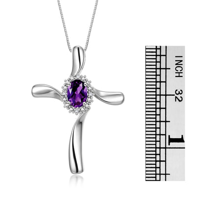 RYLOS Sterling Silver Cross Necklace: Gemstone & Diamond Pendant, 18" Chain, 7X5MM Birthstone, Elegant Women's Jewelry
