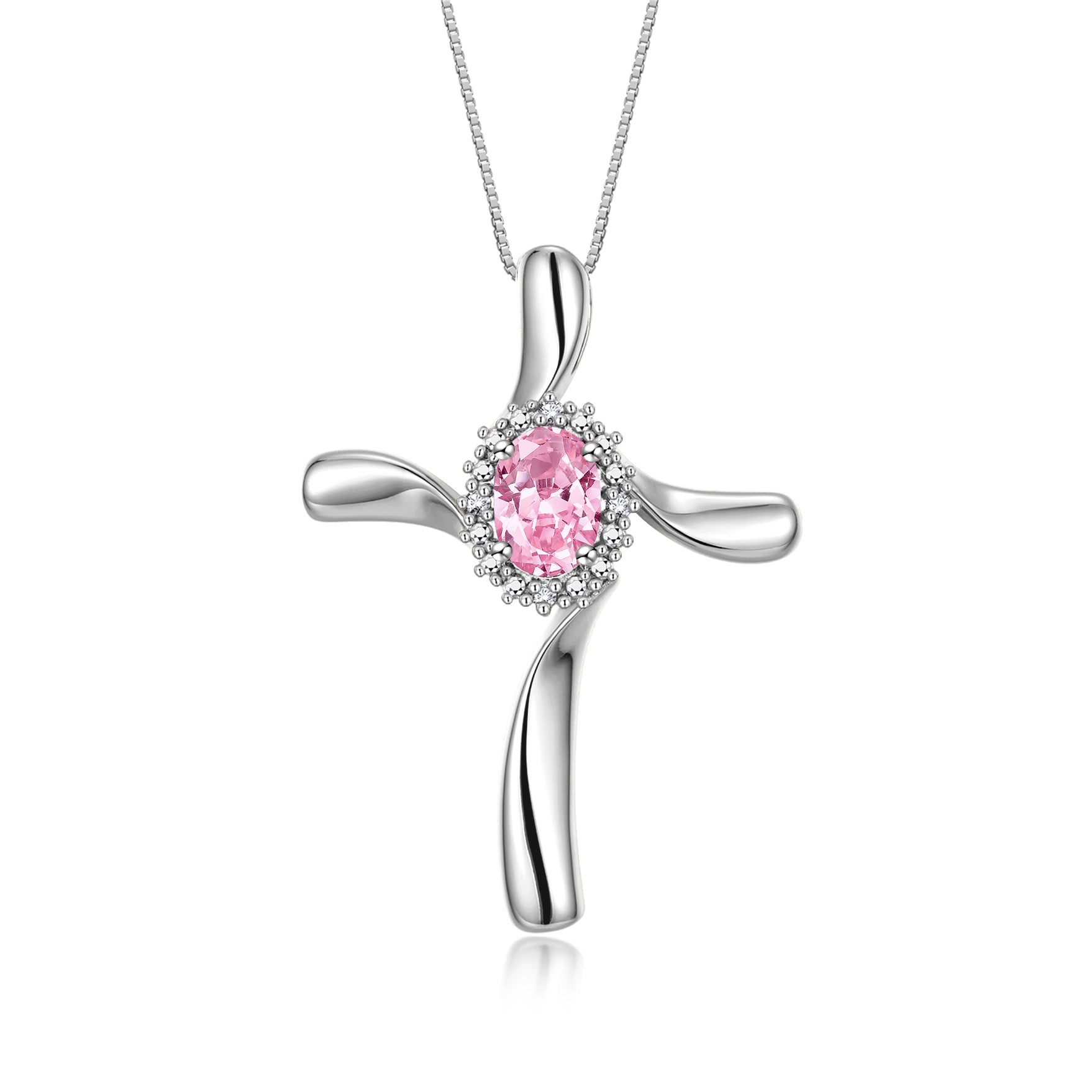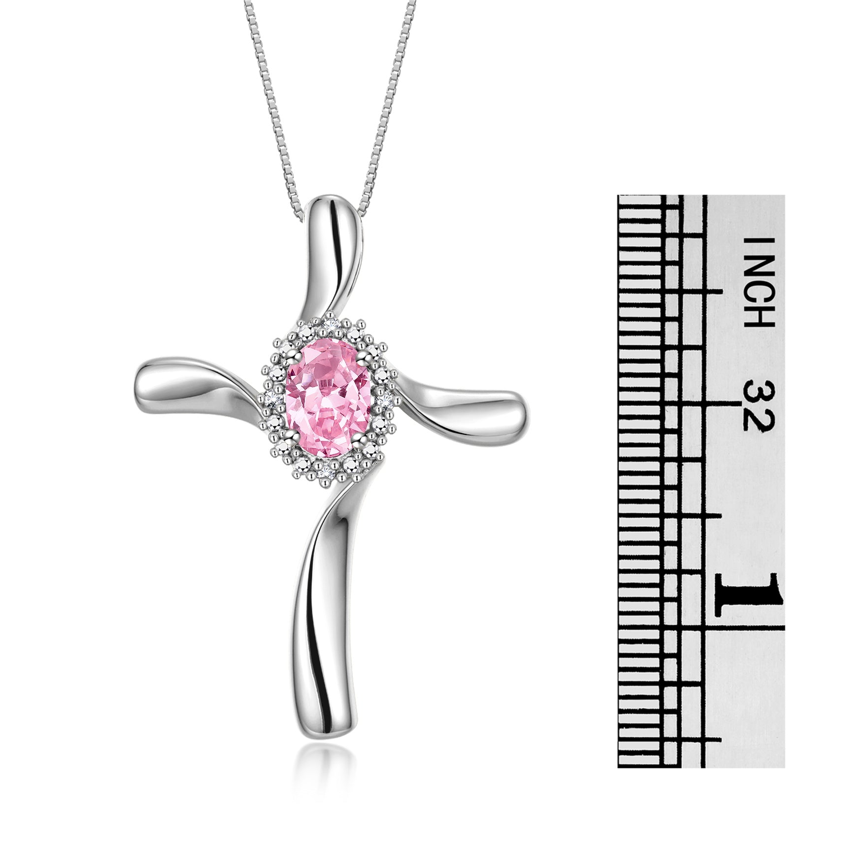 RYLOS Sterling Silver Cross Necklace: Gemstone & Diamond Pendant, 18" Chain, 7X5MM Birthstone, Elegant Women's Jewelry