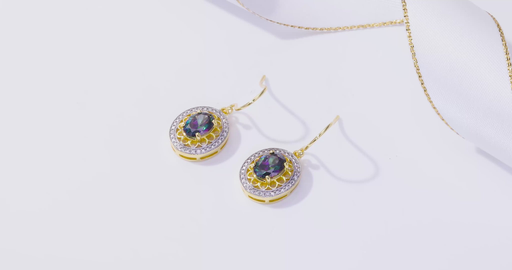 RYLOS Sterling Silver Princess Diana Inspired Earrings - Oval Shape Gemstone & Diamonds - 8X6MM Birthstone Earrings - Timeless Color Stone Jewelry