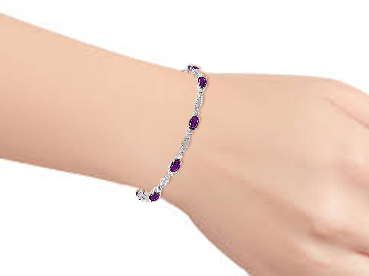 RYLOS Tennis Bracelet with 6x4MM Birthstone Gemstones & Diamonds Sterling Silver - Adjustable to 7-8" - Friendship and Elegance in One.
