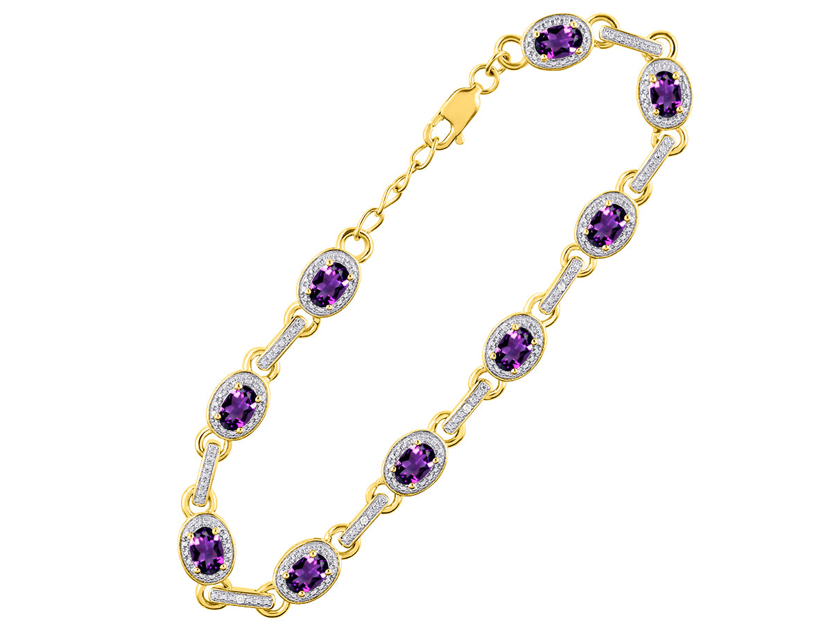 RYLOS Tennis Bracelet with Gemstones & Diamond Halo Yellow Gold Plated Silver 925 - Adjustable 7-8" Wrist, 9 Stunning 6x4MM Birthstone Jewelry for Women - Perfect for Friendship and Elegance."