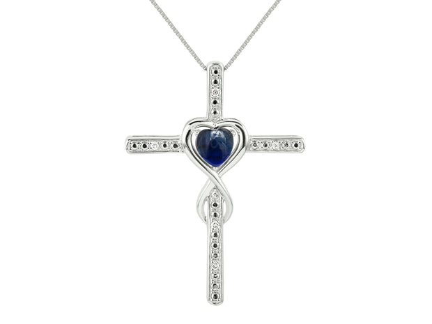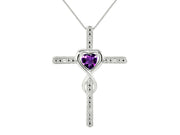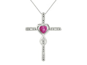 RYLOS Women's 14K White Gold Heart Gemstone & Diamond Cross Necklace. 6MM Birthstone. With 18 inch Chain. Elegant Jewelry for Women.