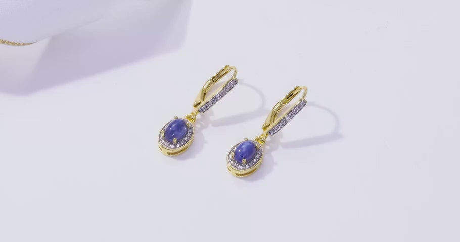 RYLOS Women's Yellow Gold Plated Dangling Earrings - Oval Shape Gemstone & Diamonds - 6X4MM Birthstone Earrings-Exquisite Color Stone Jewelry