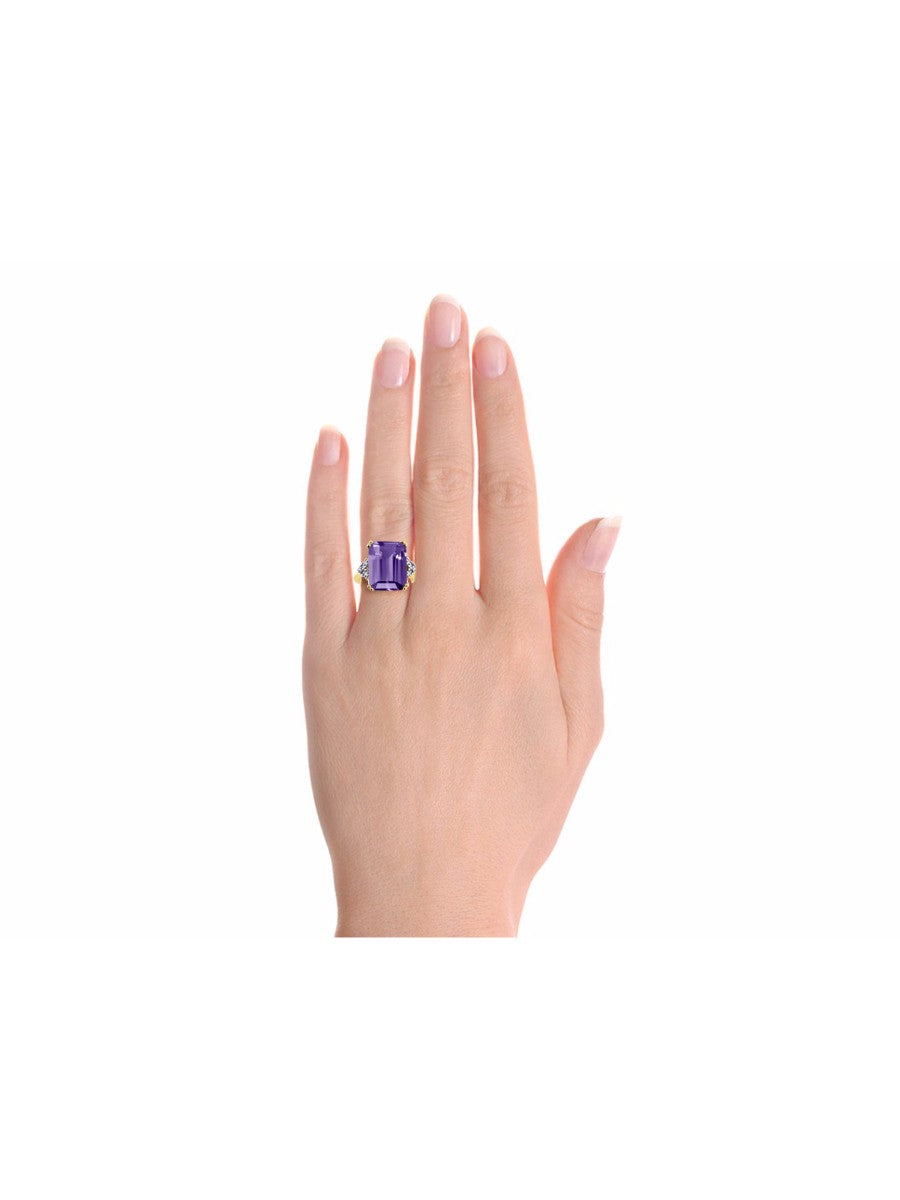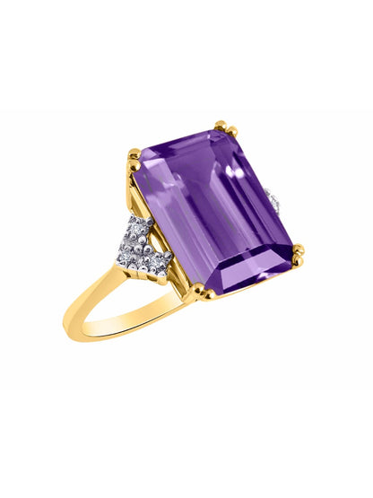 RYLOS Women's Yellow Gold Plated Silver Emerald Cut Gemstone & Diamond Ring & Matching Necklace, Rectangular 16X12MM Birthstone; Sizes 5-13