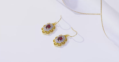 RYLOS Yellow Gold Plated Silver Antique Style Floral Earrings - Oval Shape Gemstone & Diamonds - 6X4MM Birthstone Earrings - Timeless Color Stone Jewelry