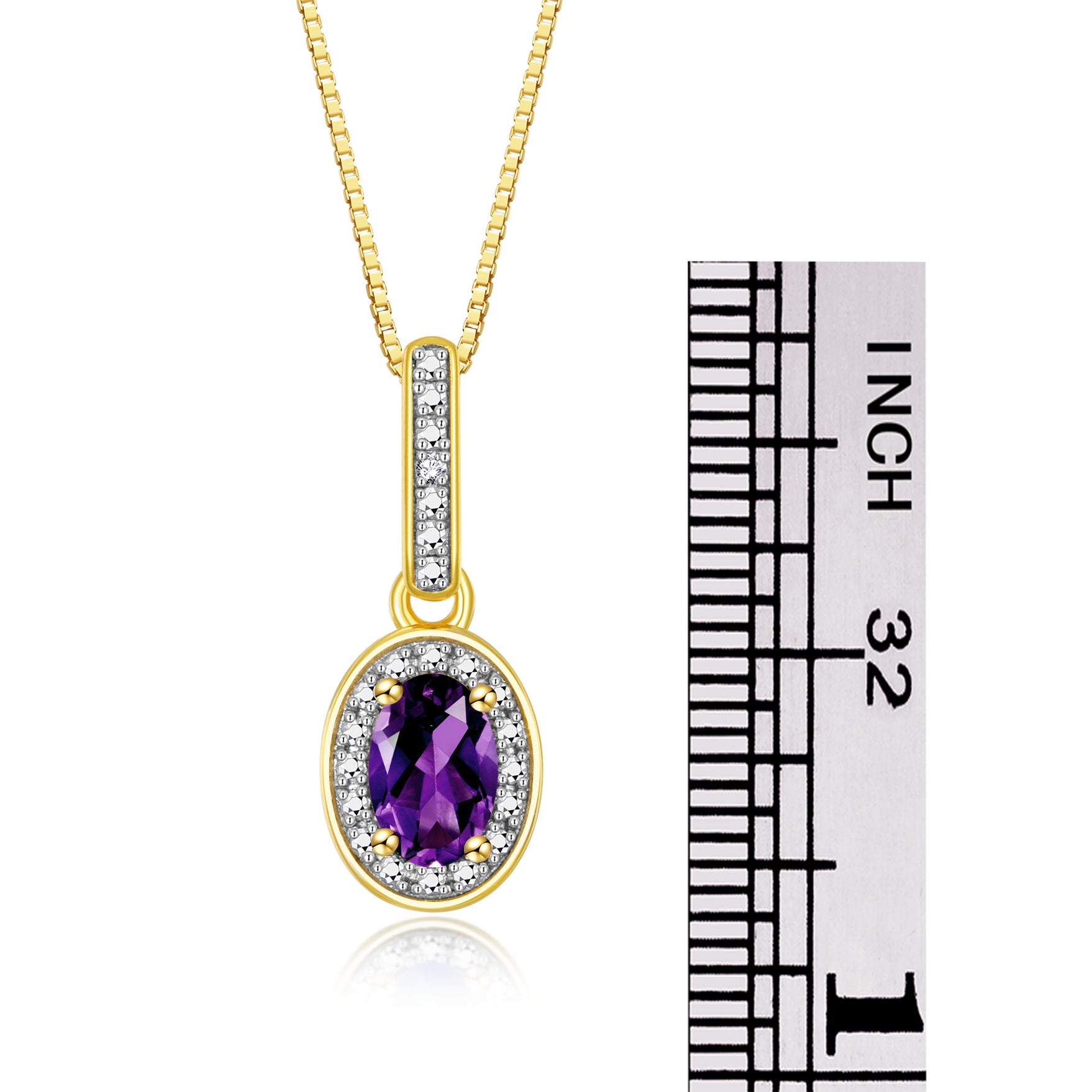 RYLOS Yellow Gold Plated1\ Silver Halo Designer Necklace: Gemstone & Diamond Pendant, 18" Chain, 6X4MM Birthstone, Elegant Women's Jewelry